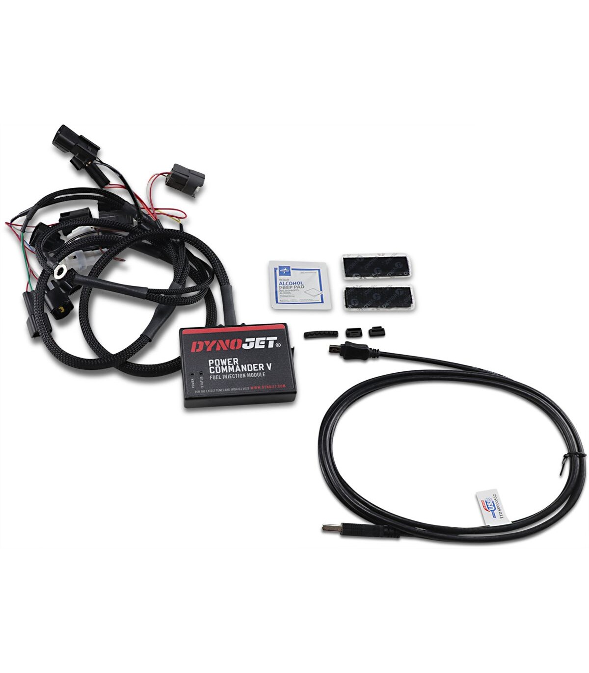 Module d’injection Power Commander VLe Power Commander V est en mesure d'autoriser chaque cylindre à être réglé individuellement pour chaque rapport lorsque le port pour le branchement de rapport engagé est connectéPossibilité d'ajouter un interrupteur unipolaire, unidirectionnel (SPST) et de basculer entre deux cartographies d'injection différentesConception d’un tableau d’ajustement basé sur le port analogique comme le boost et la températureUSB alimentée par ordinateur ; un adaptateur 9 volts n'est plus nécessaireContrôle d'injection pour chaque cylindre individuel dans un plus petit boîtierLe capteur de vitesse/rapport engagé permet d'ajuster la courbe en fonction du rapportLe port analogique permet à l'utilisateur d'installer un capteur 0-5 voltsDeux choix de la cartographie possibles intégrésPlus de gammes d'accord que PCIII USBTaille réduite par rapport au PCIII USBUtilisation de la « pompe accélérateur » amélioréeInstallation facileFabrication aux États-Unis.