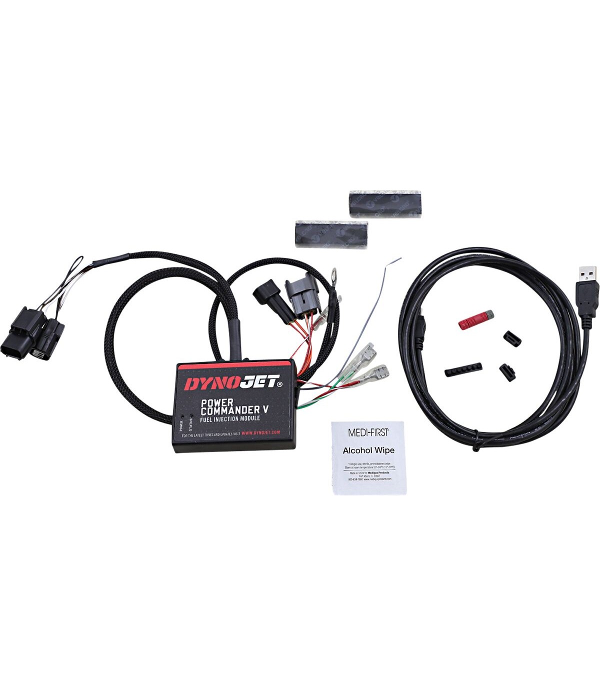 Module d’injection Power Commander VLe Power Commander V est en mesure d'autoriser chaque cylindre à être réglé individuellement pour chaque rapport lorsque le port pour le branchement de rapport engagé est connectéPossibilité d'ajouter un interrupteur unipolaire, unidirectionnel (SPST) et de basculer entre deux cartographies d'injection différentesConception d’un tableau d’ajustement basé sur le port analogique comme le boost et la températureUSB alimentée par ordinateur ; un adaptateur 9 volts n'est plus nécessaireContrôle d'injection pour chaque cylindre individuel dans un plus petit boîtierLe capteur de vitesse/rapport engagé permet d'ajuster la courbe en fonction du rapportLe port analogique permet à l'utilisateur d'installer un capteur 0-5 voltsDeux choix de la cartographie possibles intégrésPlus de gammes d'accord que PCIII USBTaille réduite par rapport au PCIII USBUtilisation de la « pompe accélérateur » amélioréeInstallation facileFabrication aux États-Unis.