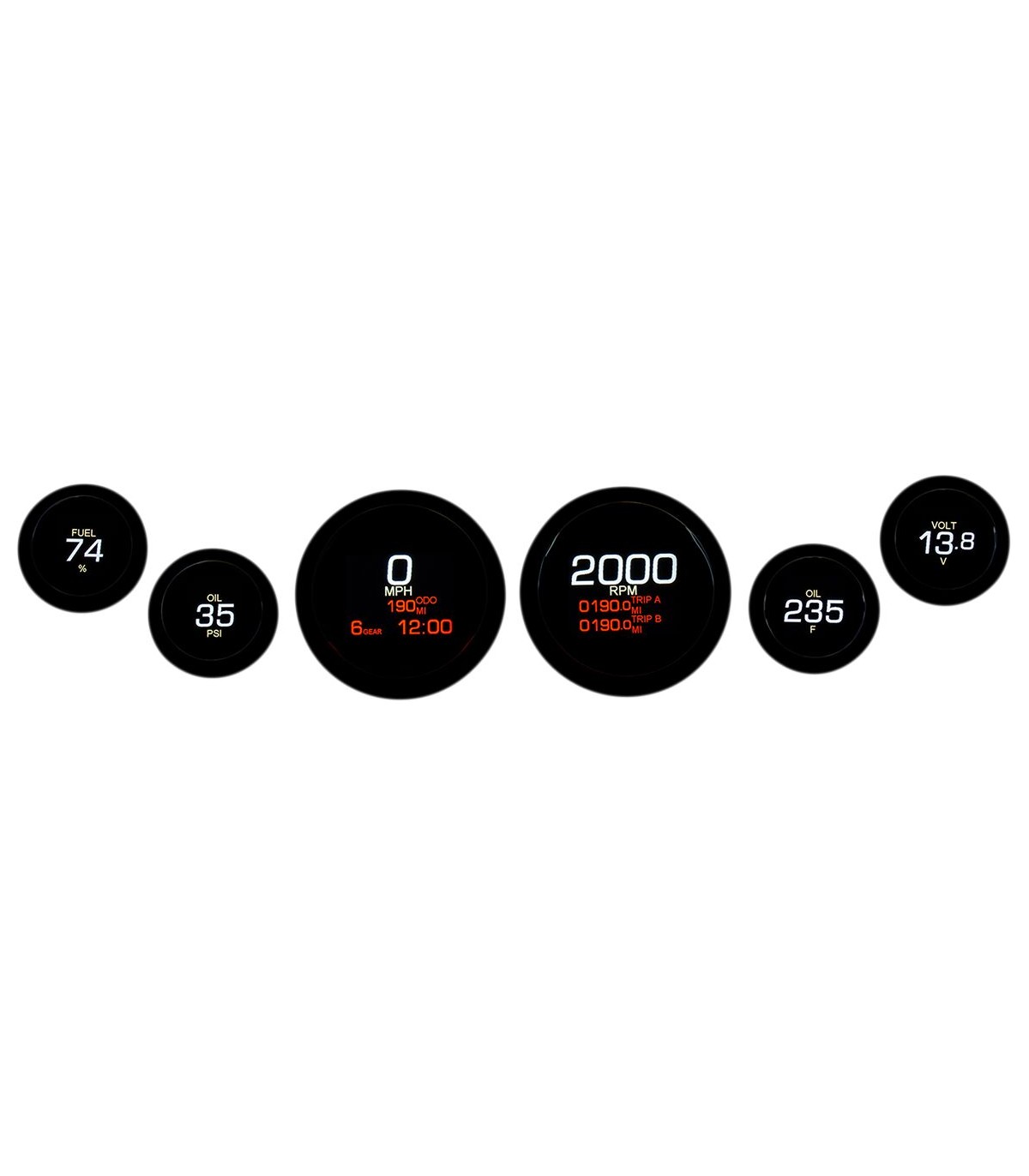 - Digital Fuel Gauge| Digital Volt Meter| Multi-Function Speedometer| Oil Pressure| Oil Temperature| Tachometer| Tripmeter