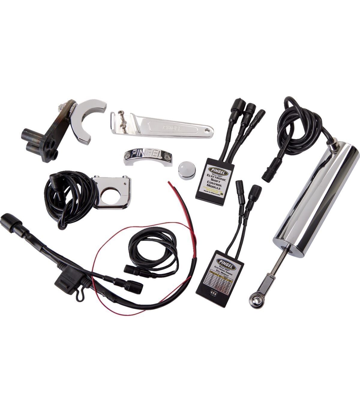 Kit de sélecteur de vitesse électrique Easy Shift™Dispositif qui suspend électroniquement le système d'allumage, permettant un changement souple à la vitesse inférieure ou supérieure sur simple pression d’un boutonPassez à la vitesse supérieure à plein ou moyen régime et rétrogradez sur simple pression d'un boutonPlus besoin d'utiliser le sélecteur de vitesse au pied et l'embrayage est uniquement utilisé au démarrage ou à l'arrêtPour une utilisation normale ou pour un déplacement complet de l'accélérateurIdéal pour les pilotes qui possèdent une moto dont le levier d’embrayage requiert une grande force pour être tiréLe passage de vitesses d'origine est maintenu après l'installationComprend une commande à double commutateur au guidon, un vérin d'engagement cylindrique plaqué avec une finition en chrome lustré, une patte de fixation de support de vérin d'engagement cylindrique à visser et un boîtier de commande dernier cri qui envoieComprend également un boîtier de coupure d'allumage électronique et des instructions étape par étape avec des photos pour une installation facileFabrication aux États-Unis.Non compatible avec les transmissions à 4 vitesses