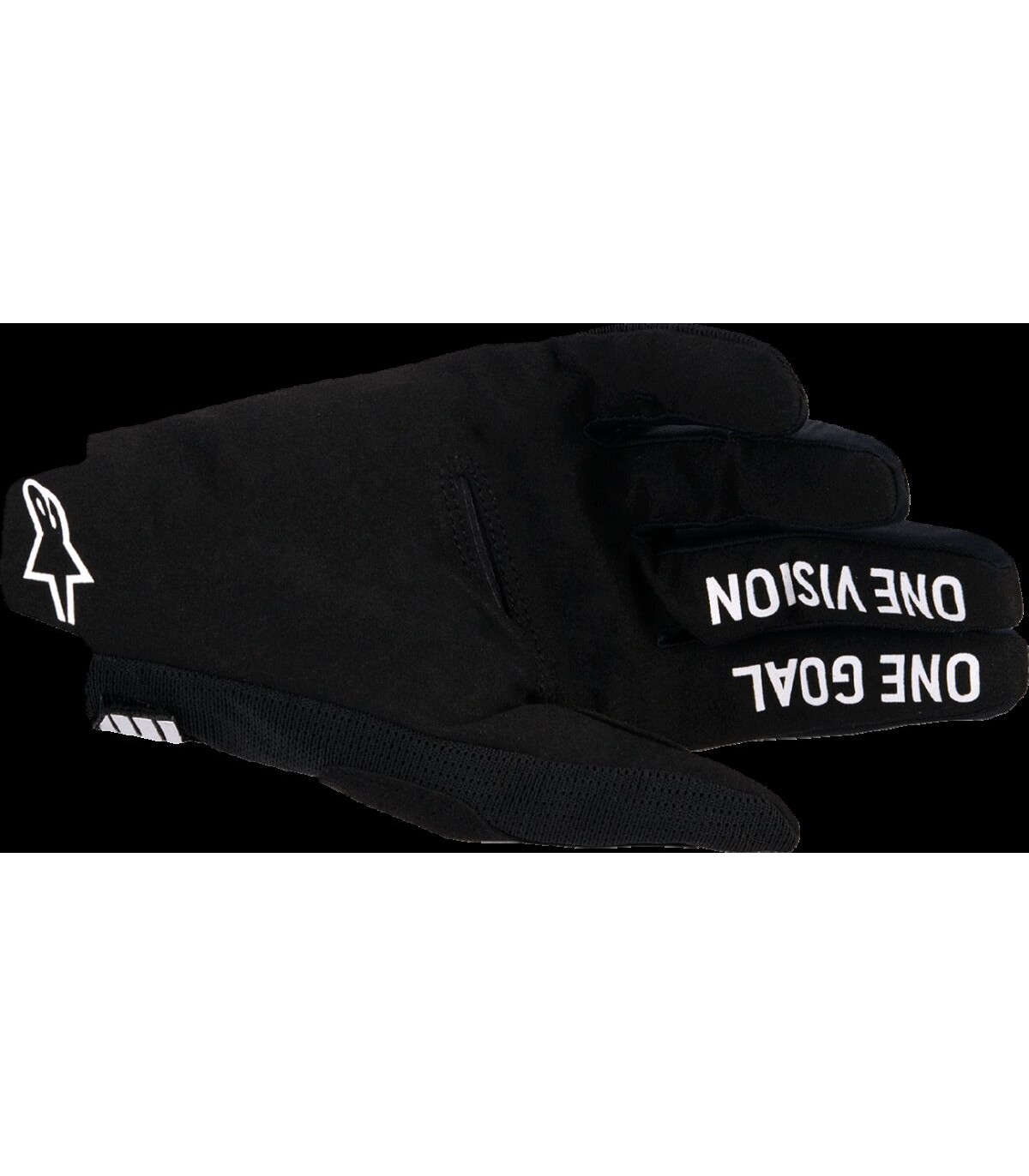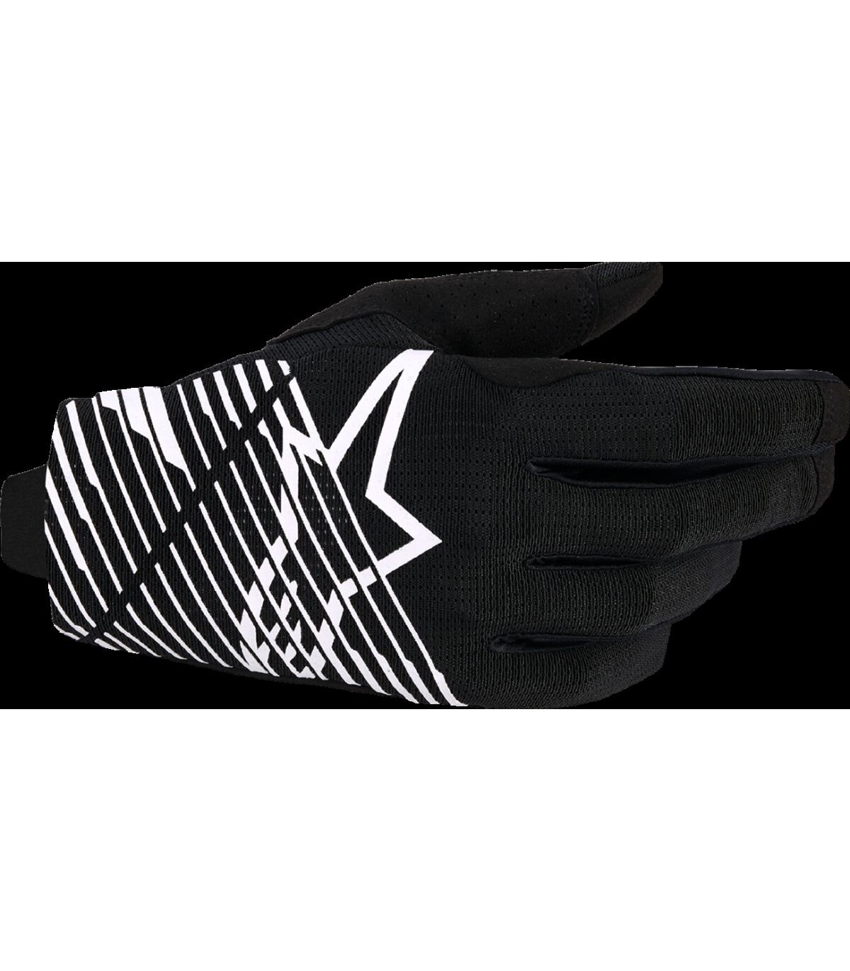 Radar Pro GlovesRadar Pro race gloves have been developed in close collaboration with Alpinestars’ top-level athletes to create a sleeker, more minimalistic design, further enhancing freedom of movement and control on the trackIncorporate a single-layer construction all around, with a single-layer 4-way stretch mesh backhand and synthetic suede side hand reinforcements for high levels of comfort and improved feeling with the bike’s controlsFor the MX26 line, the Radar Pro Gloves have conductive material for the palm and fingers, and a seamless integrated, wrist closure strapHighly breathable, ultra-lightweight and packed with excellent comfort featuresOne-piece synthetic suede palm with built-in stretch offers excellent comfort and freedom of movement, ensuring easy handling of grips and leversWrapped fingertips and silicone grip on first and second fingers for enhanced durabilityThumb patch perforations ensure enhanced airflowSynthetic suede, perforated thumb reinforcementSew-free cuff binding with internal synthetic suede provides maximum comfort on the wrist and soft touchWrapped tips for durability and silicone grip on first and second fingersConductive palm and fingers for use with smartphones and touchscreen devicesLocalized perforations on the synthetic suede thumb for performancePull tab with silicone grip for quick and easy entry into the gloveSeamless molded hook Velcro closure strap for securityPrinted graphic on backhand