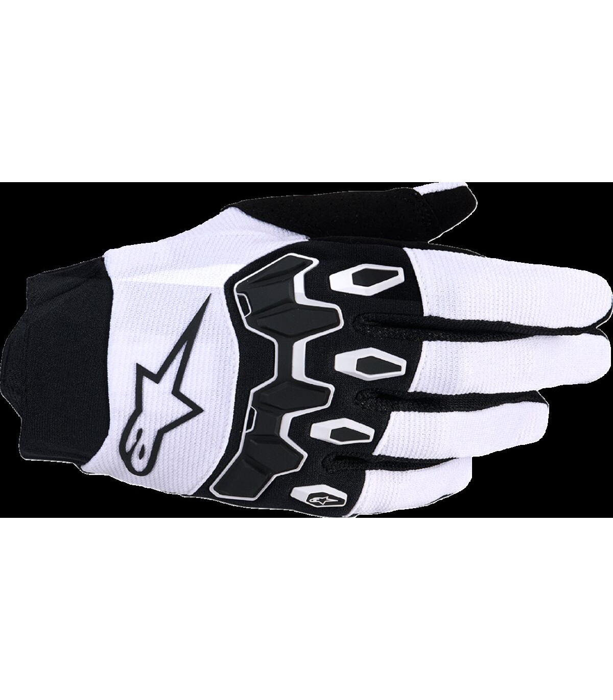Full Bore V2 GlovesFull Bore V2 Gloves offer a powerful balance of performance, protection and airflow designed with motocross riders in mindBackhand is reinforced with an advanced TPR knuckle protector specifically designed to allows each part of the protector to move with the hand, maintaining mobility and comfort during high intensity movements typical of motocross and off-road ridingBuilt from advanced, reinforced, breathable, stretch fabric and a newly engineered ergonomic TPR knuckle, these gloves ensure an exceptional fit and high levels of rider comfort, ideal for those seeking a durable and protective glove for intense MX riding sessionsUpper is constructed from a breathable stretch fabric that provides high levels of rider comfort and an optimized fitNewly designed TPR knuckle protectors deliver both effective protection and comfortable flexibility for demanding ridesReinforced synthetic suede palm enhances durability and allows easy use of mobile devices without removing the glovesBreathable flex fabric upper construction and the ventilated stretch fourchettes delivers premium comfort and mobility on the bike’s controlsNeoprene cuff, with its integrated wrist strap, offers a secure and personalized fit while maximizing comfort and flexibilityReinforced synthetic suede palm for high levels of durability and a secure grip on the handlebars and bike’s leversPerforated, reinforced thumb patches for added durability, abrasion resistance, and airflowSilicone print on the first and second fingers for optimized grip with the bike's controlsPull tab with a silicone grip for easy on-off