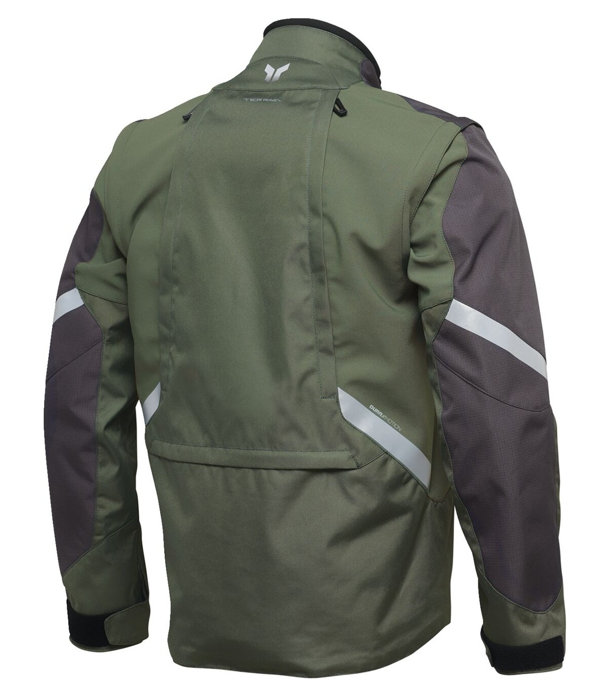 Veste TerrainPanneaux indéchirables et résistant à l’abrasion sur les manches et les épaulesTrois grandes poches avec fermeture éclair pour emporter sur les pistes les objets de première nécessité Zips de ventilation placés à des endroits stratégiques Panneaux Dura-Motion procurant de la souplesse sans nuire à la durabilité Fermetures éclair scellées, traitement étanchéifiant et membrane Hipora pour une meilleure résistance à l’eau Manches zippées amovibles et poche de rangement à l’arrièreVeste facilement repliable pour insertion dans la ceinture en cas d’inutilisation durant la conduite Éléments réfléchissants augmentant la visibilité Doublure en maille athlétique anti-humidité Col doux au toucher