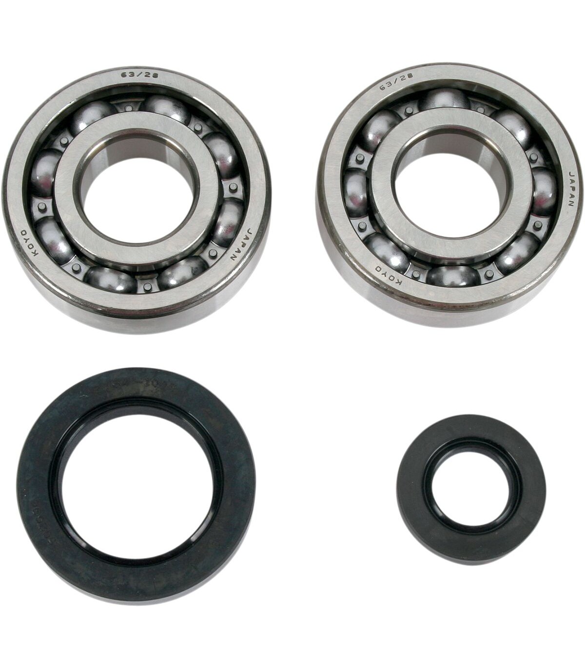 Kit de roulement de vilebrequin/jointRoulements de vilebrequin de précisionLe kit renferme les roulements de vilebrequin gauche et droit ; celui pour 2 temps comprend des joints extérieurs.Les joints ont été dotés d’un rebord en fluorocarbure pour réduire la friction du démarrage à sec sur les moteurs 2 tempsLes kits de roulement de vilebrequin pour 4 temps ne contiennent pas de joints.