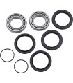 Kit de roulement de roueLes joints de roulement sont en caoutchouc à lèvre double offrant une meilleure exclusion de l'eau, de la poussière et du sable avec une meilleure rétention de la graisseLe ressort jarretière en acier garantit une pression constante sur la portée d'axe, prolongeant la durée de vie du jointLes joints spy de roue sont en élastomère nitrile TC, spécialement conçus pour empêcher l'eau, la poussière et le sable de pénétrerLes joints sont recouverts de caoutchouc à l'extérieur, créant un joint optimal au niveau du moyeuLe kit renferme l’ensemble des roulements et joints nécessaires pour remonter une roue.Roulements haute vitesse à faible friction de qualité EMQ