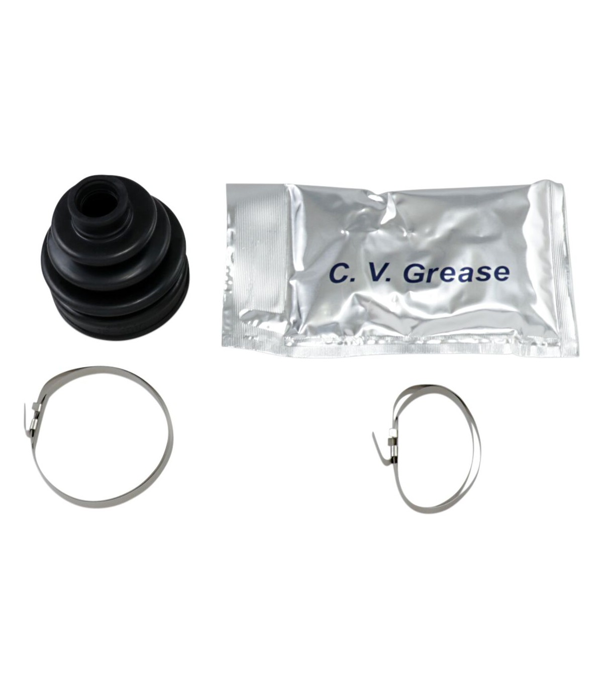 Kit soufflet de cardanRésistance à la tension 40 % supérieure et résistance à l'abrasion 50 % supérieure que le matériau traditionnel ; compatible avec les angles de cardan élevés et les exigences des quads et des UTV d’aujourd’huiLes kits comprennent deux clamps en acier inoxydable conçus pour pouvoir être serrés sans outils spéciauxLa graisse molybdène à base de lithium garantit une lubrification appropriée pour une longue durée de vie du cardan