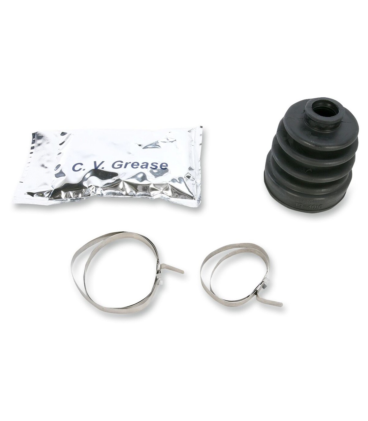 Kit soufflet de cardanRésistance à la tension 40 % supérieure et résistance à l'abrasion 50 % supérieure que le matériau traditionnel ; compatible avec les angles de cardan élevés et les exigences des quads et des UTV d’aujourd’huiLes kits comprennent deux clamps en acier inoxydable conçus pour pouvoir être serrés sans outils spéciauxLa graisse molybdène à base de lithium garantit une lubrification appropriée pour une longue durée de vie du cardan