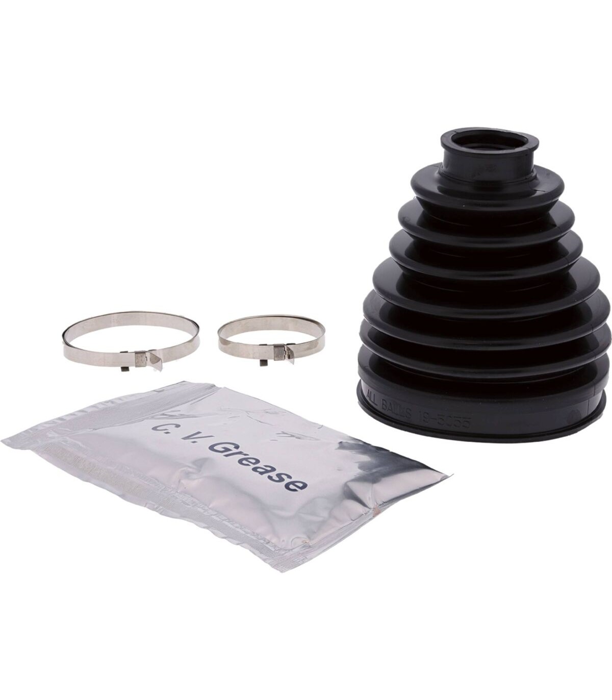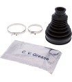 CV Boot KitThe All Balls CV Boot material is compounded from an OEM grade DCR66 rubber that is formulated specifically for the demanding requirements of todays ATV's and UTV's50% more abrasion resistant than conventional CV boot material to assure long life in today's harsh off-road environmentsRubber compound is tested to -40°F to assure good performance & long life at low temperaturesKits include two stainless steel clamps that are desired to be tightened without the use of special toolsLithium based Molybdenium grease insures good lubrication for long CV joint life